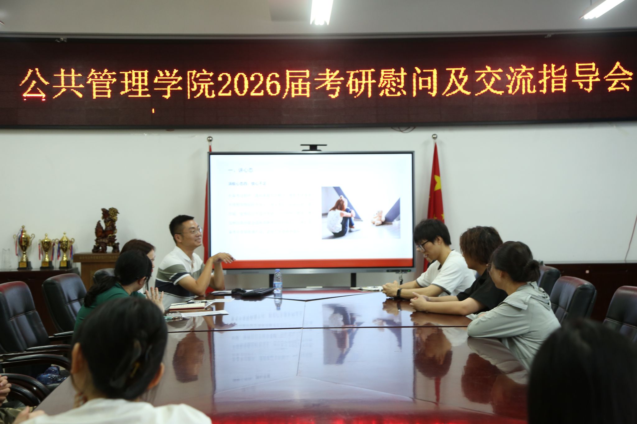 当前位置: 首页 >> 学团工作 >> 学团快讯 >> 正文 研途送暖,温情助航——公共管理学院2026届考研慰问及交流指导会 时间:2025年09月30日 14:31 作者: 梅艺 为鼓舞考研学子斗志,传递学院温暖关怀,9月29日下午,公共管理学院党员服务站在启智楼1004会议室组织召开2026届考研慰问及交流指导会。公共管理学院党委书记陆嘉、院长李孜、党委副书记谢书楠、土地资源管理系主任杜挺、城乡规划系主任曹珂以及考研学生参会。 会议按报考专业大类分两个专场。第一场由陆嘉、谢书楠、杜廷参会。活动伊始,陆嘉、谢书楠、杜廷一同为同学们送上精心准备的慰问礼品。陆嘉对现场考研学子积极备考、勇于追梦的精神风貌给予充分肯定。她在发言中强调,考研是通过学术养成锤炼思辨能力、拓宽眼界、实现人生二次选择的重要途径,勉励学生科学规划、瞄准目标、全力冲刺。随后,杜挺围绕“心态、策略、信心”三大关键点与同学们交流。他精准剖析了备考中常见的负面状态,并给出了接纳情绪、调整预期的具体建议,通过分析考公考编对高学历的倾斜,强调了考研的重要性,鼓励学生坚定考研信心,认真复习。 第二场由李孜、谢书楠、曹珂参会。李孜介绍了学院在学科建设、师资力量与发展前景等方面的整体优势,鼓励学生继续深造。曹珂在人文地理与城乡规划专业方面对考研学生进行了指导。最后,谢书楠强调在当前考研冲刺的“关键节点”,全体考研学子要继续保持目前良好的复习状态,最后的胜利往往在于坚持。 此次慰问及交流指导会不仅为考研学子带去物质上的支持,在专业方面给予指导,更在精神层面注入了坚定与温暖。公共管理学院党员服务站将持续关注学生备考动态,做好全过程保障与服务,共同续写公共管理学院学子的研路新篇章! 上一条:公共管理学院2025年国家奖学金评定公示 下一条:以勤助心,自立自强——公共管理学院举办2025-2026学年第1学期学生助理培训交流会 【关闭】