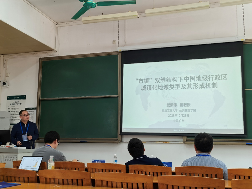 当前位置: 首页 >> 学院新闻 >> 正文 我院城乡规划系教师武荣伟参加2025年中国人口地理学术年会并做分论坛报告 时间:2025年10月31日 12:33 作者: 武荣伟 2025年10月25日,2025年中国人口地理学术年会在中山大学成功举办。会议由中国地理学会人口地理专业委员会主办,中山大学地理科学与规划学院承办,以“以人口高质量发展支撑中国式现代化”为主题。本次会议汇聚了来自全国高校、科研机构、政府部门、规划企业的300余位专家学者与会。论坛共设有“乡村振兴、新型城镇化与城乡融合发展,新时代中国人口迁移流动的时空特征与演变趋势,人才流动集聚与区域高质量发展,城市社会空间分异与城市社会融合治理”等12个分论坛。 我院城乡规划系青年教师武荣伟应邀在“乡村振兴、新型城镇化与城乡融合发展”分论坛上作交流发言。他以《“市镇”双维结构下中国地级行政区城镇化地域类型及其形成机制》为题,分享了其最新研究成果。他指出,中国城镇化发展已步入中后期阶段,人口迁移流动的特征发生了重要转变,城—城间人口流动增多,镇域单元在人口流动中的枢纽作用持续增强,深入城镇化内部,从市—镇双维结构,揭示城镇化的地域类型与形成机制,对于因地制宜推动新型城镇化建设具有重要意义。汇报结束后,教师武荣伟与评议专家进行了深入交流,并就城镇化与城市化的异同点进行了讨论。 学院历来高度重视青年教师的成长与发展,把青年教师队伍建设作为推动学院事业持续进步的重要战略。学院积极鼓励青年教师“走出去”,在更高层次的学术平台上开阔视野、交流思想、展示才华。通过参加国内外重要学术会议,青年教师得以在交流中提升学术能力,在碰撞中激发创新思维。未来,学院将进一步通过制度保障与资源支持,为青年教师提供了广阔的发展空间和良好的学术氛围,使他们能够在科研探索与学术表达中不断成长、积累成果。 上一条:党建引领聚合力,校地合作谋发展公共管理学院党委与两江新区翠云街道党工委开展结对共建活动 下一条:我院公共管理系方浩教师参加中国行政管理学会2025年年会并在青年学者论坛进行发言 【关闭】