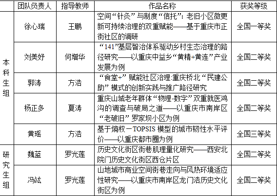 当前位置: 首页 >> 学院新闻 >> 正文 践行“商工融合”,我院师生团队在第七届全国大学生城市管理竞赛中喜获全国一等奖1项,全国二等奖5项 时间:2025年11月24日 16:08 作者: 何增华 2025年11月21日至11月22日,由中国市政工程协会城市与市政管理专业委员会主办,山东财经大学公共管理学院承办的第七届全国大学生城市管理竞赛在山东济南举行。本届赛事吸引来自厦门大学、四川大学、天津大学、电子科技大学、中南财经政法大学、山东财经大学、重庆工商大学等国内近百所高校的422支本科生、研究生团队参赛。在最终进入全国决赛终审答辩环节的155支队伍中,我院5支城市管理专业本科生团队与2支城乡规划学研究生团队表现出色,最终获得全国一等奖1项,全国二等奖5项,全国三等级1项!此外,重庆工商大学凭借出色的赛事组织工作,荣获本届竞赛的“优秀组织奖”! 全国大学生城市管理竞赛是我国城市管理领域最具影响力的高水平学科赛事之一。本届竞赛紧密对接国家战略,特别是在2025年7月中央城市工作会议明确提出“加快构建宜居、韧性、智慧城市体系”的背景下,赛事更为新时期城市管理专业的创新与发展注入了强劲动力。本次竞赛中,我院学子的出色表现,是学院践行“商工融合”育人理念的生动缩影。部分参赛团队由城市管理专业与城乡规划专业学生共同组队、协同作战。在备赛过程中,团队成员充分发挥各自专业优势,将公共管理的政策分析与城乡规划的空间设计等能力有机互补,共同应对城市发展中的复杂治理难题,充分展现了跨学科合作的创新活力与解决实际问题的综合素养。 自本届赛事启动以来,学院高度重视,精心组织。李孜院长亲自进行赛前动员,激发师生参赛热情;由多学科背景教师组成的指导团队,则围绕“商工融合”的思路,多次开展专题辅导、小组研讨与模拟答辩,对参赛项目进行了系统化打磨与持续优化,为作品质量的全面提升提供了坚实保障。 本次佳绩的取得,是学院近年来积极探索“商工融合”人才培养路径的阶段性成果。下一步,学院将以此为契机,系统总结参赛经验,未来将从理念引导、课程教学、实践训练、竞赛驱动等多维度深化“商工融合”, 持续强化学生综合素养与跨界创新能力,力争在各类高水平学科竞赛中实现新突破,不断推动学院高质量育人工作迈上新台阶。 上一条:李孜院长携城市管理专业教师参加2025年中国城市管理发展年会并分别发言 下一条:AI赋能:智教•智学•智研——公共管理学院举办第五期“书记下午茶”暨“卓越导师制”启动会 【关闭】