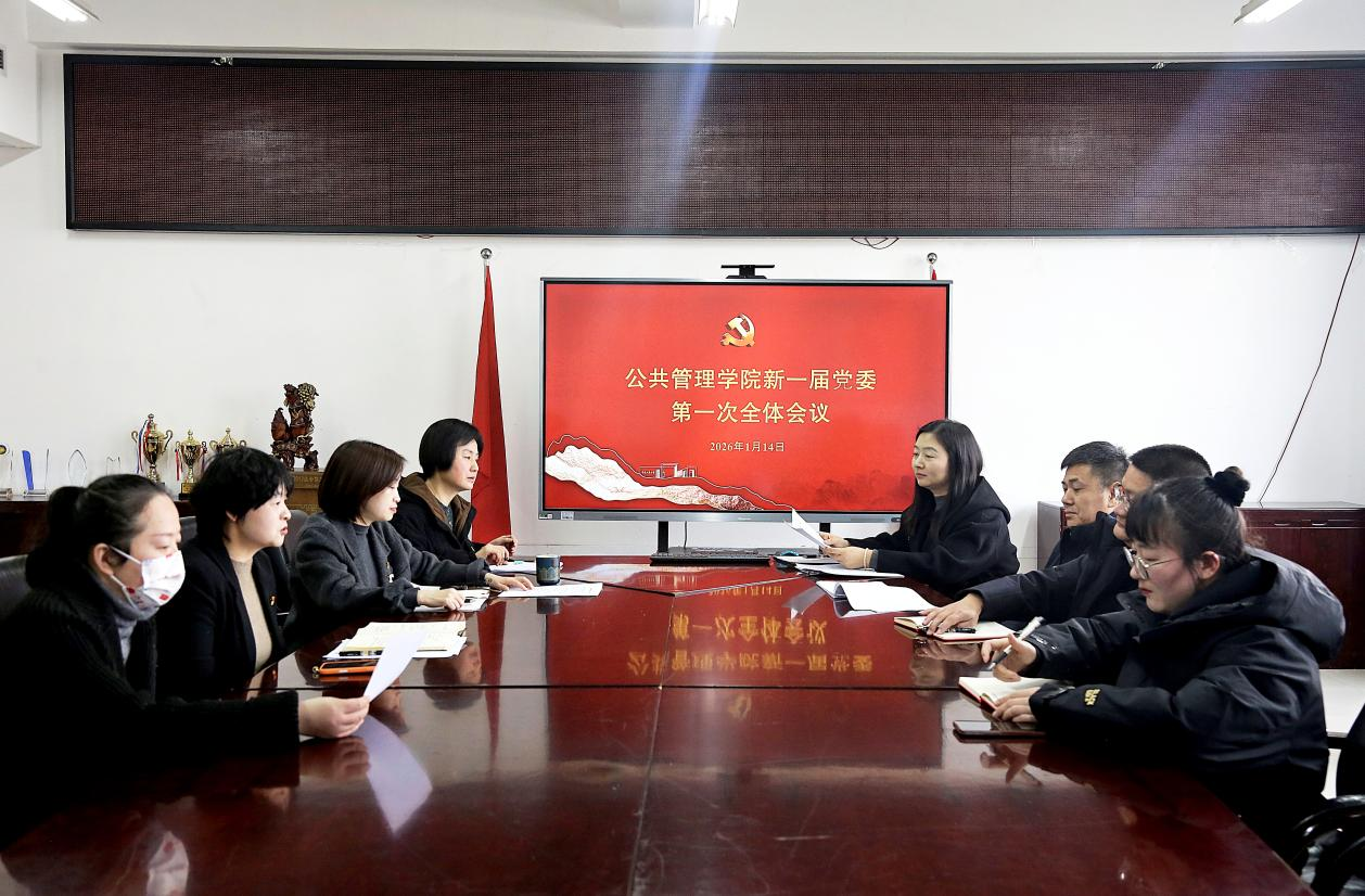 当前位置: 首页 >> 学院新闻 >> 正文 公共管理学院召开新一届党委第一次全体会议 时间:2026年01月16日 14:23 作者: 李恒 2026年1月14日,公共管理学院党委委员在学院1004会议室召开新一届党委第一次全体会议,选举产生书记、副书记。 上一条:公共管理学院召开新一届纪委第一次全体会议 下一条:重庆工商大学公共管理学院召开党员大会 圆满完成“两委”换届选举工作 【关闭】