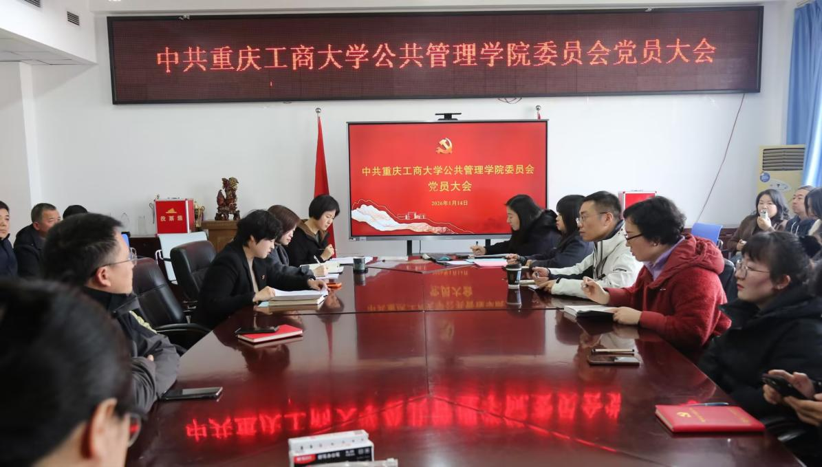 当前位置: 首页 >> 党建双创 >> 正文 重庆工商大学公共管理学院召开党员大会 圆满完成“两委”换届选举工作 时间:2026年01月16日 14:13 作者: 李恒 2026年1月14日,重庆工商大学公共管理学院党员大会在学院1004会议室隆重召开,顺利完成党委、纪委(简称“两委”)换届选举各项工作。学院党委书记陆嘉主持会议,全体党员同志参会。 大会在庄严的《国歌》旋律中正式启幕。首先由陆嘉代表上一届学院党委作工作报告。报告系统梳理了“十四五”期间学院在党建引领发展、学科内涵建设、人才培养提质、师资队伍锻造等方面的工作成果,深刻分析了当前发展阶段面临的新形势与新挑战,明确了未来一段时期的核心发展目标与重点任务。党委副书记、纪委书记谢书楠代表上一届学院纪委作工作报告。 随后,大会依次审议通过了上届党委工作报告、纪委工作报告、党费收缴使用管理情况报告,表决通过了《中共重庆工商大学公共管理学院委员会及纪律检查委员会选举办法(草案)》,以及监票人、计票人建议名单。在选举环节,全体党员以高度的政治责任感,采用无记名投票、差额选举的方式,依法选举产生了新一届学院党委委员和纪委委员。选举结束后,新一届党委、纪委分别召开第一次全体会议,顺利选举产生书记、副书记。 大会各项议程圆满完成,在激昂的《国际歌》声中圆满闭幕。陆嘉强调,此次换届选举大会是学院党内政治生活的重要里程碑,为学院高质量发展夯实了组织保障。新一届“两委”班子将以此为契机,团结带领全院师生坚守立德树人初心,聚焦学科发展核心,奋力开创学院事业发展新局面。 下一条:学院党委理论学习中心组集中学习贯彻党的二十届四中全会精神 【关闭】