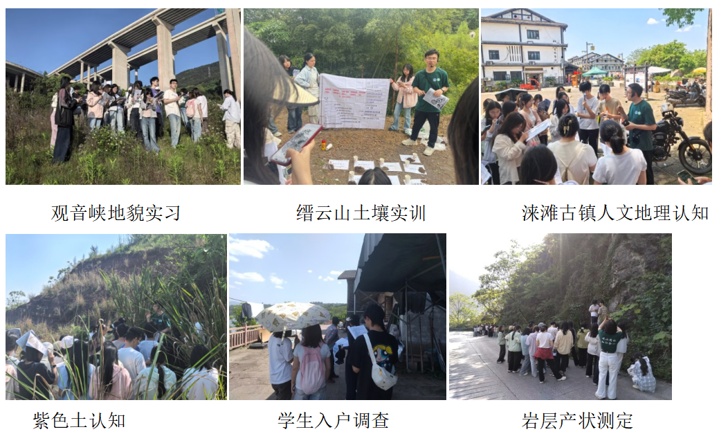 当前位置: 首页 >> 教学动态 >> 正文 “知行合一,行走课堂”:公共管理学院土地资源管理专业 《地学综合实习》圆满完成 时间:2026年04月21日 10:18 作者: 范春、周心琴、臧亚君、陈帅、蔡进 2026年4月18日至19日,我校公共管理学院24级土地资源管理专业全体学生在五位教师带领下,赴北碚、合川两区开展了为期两天的地学综合实习。本次实习以“知行合一,行走课堂”为主题,旨在实现《地球科学概论》课程理论与实践有机融合,为后续专业学习打下扎实地学基础。 4月18日,实习首站来到北碚观音峡。在蔡进、臧亚君教师指导下,同学们实地识别了观音峡背斜构造,观察了嘉陵江流水地貌特征。随后在观音峡采石场,学生熟练掌握了地质罗盘使用方法,完成了岩层产状测定,并围绕废弃矿山生态修复及再利用展开讨论。下午,实习队伍转至合川涞滩,陈帅老师对四川盆地典型紫色土进行了详细讲解,同学们认真记录。在涞滩古镇,在范春、蔡进及周心琴老师的解说下,同学们系统了解了古镇的历史沿革、保护现状及未来规划。随后,深入二佛村开展农户入户调查,详细了解村民家庭经济、人口结构及就业状况,倾听其对乡村发展的实际需求。 4月19日,实习聚焦缙云山国家级自然保护区。同学们对山地黄壤典型剖面及片区不同类型土壤进行了系统认知,并现场完成土壤pH值测定。结合缙云山生态文明建设成效,师生们还考察了乡村民宿发展状况,感知了“绿水青山如何转变为金山银山”的实践路径。 本次实习将课堂搬进山水之间,强化了学生的野外观察与综合分析能力,真正实现了学以致用、用以促学的教学目标。 上一条:深耕考研优就业,教研赋能促发展-人文地理与城乡规划专业4月教研活动圆满举行 下一条:我院联合人工智能学院为科研小能手举办“Python政策爬取”专题讲座 【关闭】