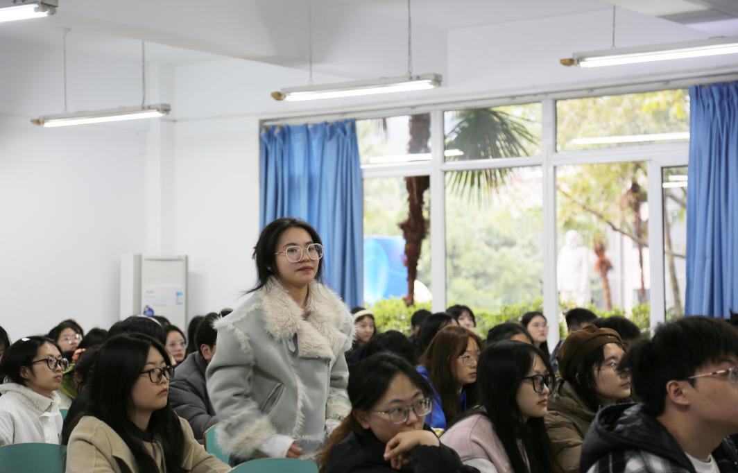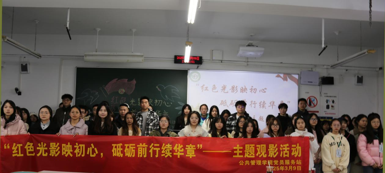 当前位置: 首页 >> 学团工作 >> 共学社区 >> 正文 红色光影映初心,砥砺前行续华章——公共管理学院举办主题观影活动 时间:2025年03月10日 17:21 作者: 蒋杰 为深入学习党的光辉历程,传承红色基因,激发青年学子的爱国热情与历史责任感,公共管理学院党员服务站精心策划,于3月9日下午在博智楼成功举办了"红色光影映初心,砥砺前行续华章"主题观影活动。活动以红色文化教育为纽带,通过沉浸式观影与互动交流,引导同学们在光影中感悟革命先辈的初心使命,厚植家国情怀。现场氛围庄重而热烈,同学们积极参与,以饱满的热情共赴这场精神洗礼之旅。 活动伊始,主持人袁若芸详细介绍了活动流程,为本次活动拉开了序幕。首先,全体参与者一同观看了红色电影《八佰》的精彩片段。影片中那段战火纷飞、热血激昂的抗战岁月,深深打动了在场的每一位同学。 观影结束后,活动进入了紧张有趣的互动环节。主持人根据影片情节提出了情景问题,同学们踊跃举手回答,现场气氛热烈。紧接着,主持人又提出了与电影及其历史背景有关的知识问题,同学们积极抢答,进一步加深了对红色文化和历史知识的理解。 整个活动共进行了五轮互动,每一轮都控制在15分钟左右,确保每位同学都能充分参与其中。活动最后,主持人对本次活动进行了全面总结,并组织大家合影留念。同学们在工作人员的引导下有序签退离场,活动圆满结束。 此次“红色光影映初心,砥砺前行续华章”主题观影活动,以观影和互动问答相结合的形式,引导青年学子重温革命先辈的峥嵘岁月。同学们从中深切体悟党的奋斗历程与精神伟力,进一步厚植了爱国主义情怀,大家纷纷表示,要将这种精神传承下去,为实现中华民族伟大复兴的中国梦贡献自己的力量。未来,公共管理学院党员服务站将进一步推动校园红色文化建设,激励更多青年学子不忘初心,砥砺前行。 上一条:风舞纸鸢,约绘春天——公共管理学院举办春分风筝涂鸦活动 下一条:互通心声 共话成长——公共管理学院共学社区接待日 (第13期) 【关闭】