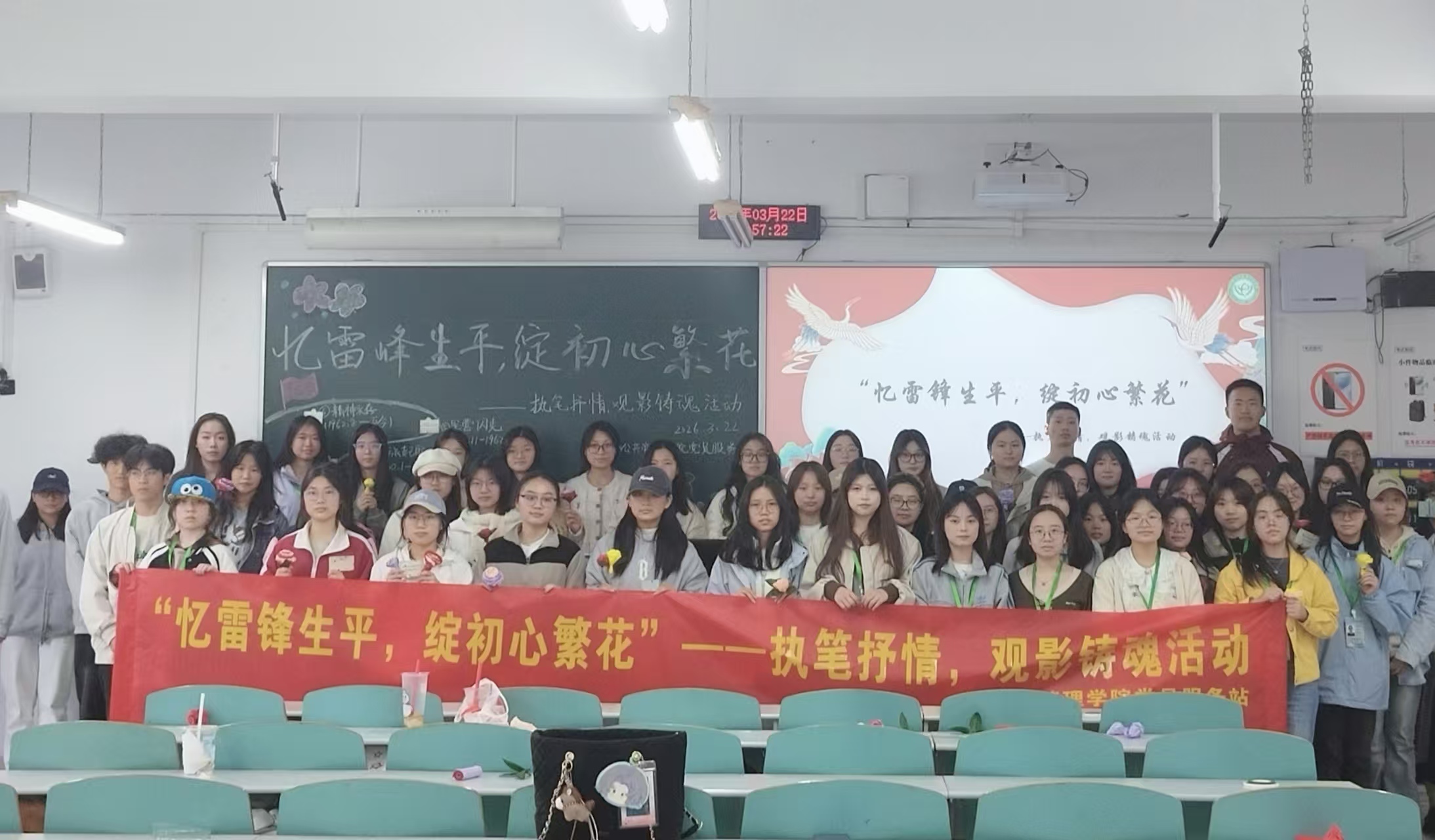 当前位置: 首页 >> 学团工作 >> 共学社区 >> 正文 “忆雷锋生平,绽初心繁花”——公共管理学院共学社区党员服务站开展执笔抒情,观影铸魂活动 时间:2026年03月23日 10:23 作者: 梅艺 3月22日下午,公共管理学院共学社区党员服务站于重庆工商大学南岸校区博智楼07104教室开展了“忆雷锋生平,绽初心繁花”——执笔抒情,观影铸魂活动。此次活动吸引了60名同学参与,大家在互动实践中传承雷锋精神,筑牢理想信念根基。 活动现场,主持人张星雨介绍了活动背景、意义与流程,以雷锋简介视频,带领大家走进雷锋的生平世界,活动由此正式拉开序幕。随后抽中事迹卡片的参与者以雷锋生平六个重要阶段为脉络,上台完成事迹与时间线匹配,并结合自身经历分享感悟,让同学们系统了解雷锋的人生历程,体悟到了其精神内核。手工制作环节,参与者观看教学视频后,用宣纸折出朵朵繁花,将对雷锋精神的理解与敬意融入创作,以花喻人,传递温暖奉献的情怀。紧接着新时代雷锋精神观影感悟环节,主题视频展现了当代榜样践行雷锋精神的事迹,让大家见证雷锋精神的时代赓续。视频结束后,同学们踊跃分享身边的“活雷锋”故事,从点滴善举中明晰新时代践行雷锋精神的具体路径。 此次活动以“忆-悟-践”串联全程,让雷锋精神在互动体验中真正走进同学们心里,也是公共管理学院共学社区“铸魂工程”的一次鲜活落地。公共管理学院共学社区党员服务站也将继续以党建为引领,用青年喜闻乐见的形式开展红色教育,让奉献与担当的种子在同学们心中生根发芽。 上一条:“破‘简’而出,历‘阶’而上”——公共管理学院共学社区接待日(第22期) 下一条:公共管理学院开展2025-2026学年助理班主任中期汇报 【关闭】