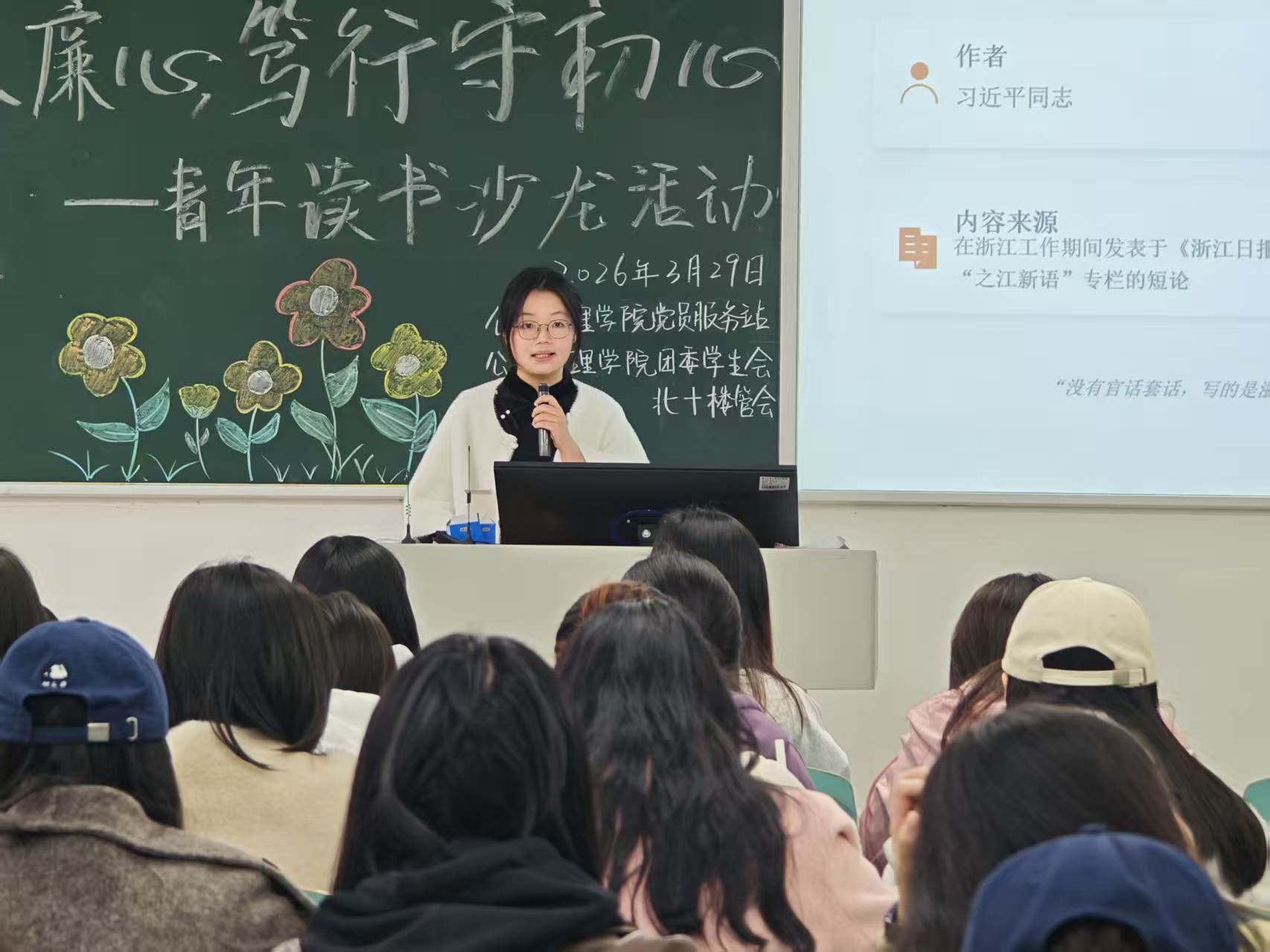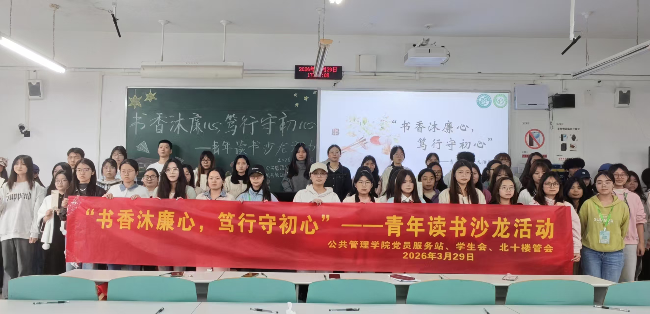 当前位置: 首页 >> 学团工作 >> 共学社区 >> 正文 “书香沐廉心,笃行守初心”——公共管理学院共学社区党员服务站举办青年读书沙龙活动 时间:2026年03月30日 14:17 作者: 梅艺 为深入推进廉洁文化建设,引导青年学子筑牢廉洁意识、坚守初心使命, 3月29日,公共管理学院党员服务站联合学院团委学生会、北十楼管会,于重庆工商大学南岸校区博智楼07104教室共同开展了“书香沐廉心,笃行守初心”——青年读书沙龙活动,吸引了全院68名同学踊跃参与。大家在沉浸式阅读分享中感悟清廉力量,涵养清风正气。 在第一个环节“书香话廉洁”中,四位读书分享官依次登台,围绕《之江新语》《沧流》《清风传家》《曾国潘家书》展开分享,并结合书中生动案例与深刻论述,深入解读其中蕴含的廉洁思想与高尚品格,带领在场同学感悟清廉文化的深刻内涵,引发了大家的深度思考与情感共鸣。随后的“廉语寄书签”环节中,参与的同学拿起精心准备的书签,提笔写下专属廉洁承诺。一句句铿锵有力的箴言,既是对自我的警醒与约束,也是对廉洁自律的坚定践行。最后,主持人对本次活动进行总结,鼓励全体同学以此次活动为契机,将清廉精神融入日常学习生活,主动传播廉洁文化。 此次活动以阅读为桥梁、以分享为纽带,通过“读书明理、以学润心”的形式,引导青年学子品读清廉经典、学习清廉事迹、感悟清廉精神,进一步增强了其纪律意识、责任意识与底线思维。公共管理学院共学社区党员服务站将持续依托“铸魂工程”,以党建为引领,创新开展更多贴近青年需求的廉洁文化教育活动,推动廉洁教育走深走实。 上一条:解论文写作之惑,答科研起步之疑——公共管理学院举办“共学社区接待日”(第23期) 下一条:“破‘简’而出,历‘阶’而上”——公共管理学院共学社区接待日(第22期) 【关闭】